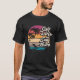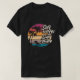 Det svarta plagget har en cirkelformad design med en tropisk strandscen. Silhouetted handflatan träd och en strandstol ställs mot en strimlad solnedgång i skuggor av rosa, orange och gult, ovanför ett blått hav. Texten "Salt Vatten och Sol Shine" skrivs i ett typsnitt av avslappnaden script. Det framkallar en avslappnad semesterstämning.