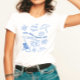 Din sommarskjorta för stranddagar, flickors resor, kustnära äventyr och sjöbaddagar. Den här lekande designen har handritade strandikoner från Dodle-stil, bland annat solhatt, cocktail, solglasögon, flip-flops och mycket annat, som sammanfogats i en roligt, med vibrationsblått.