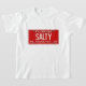 Travel back in time with this vintage-inspired SALTY license plate design. Bold embossed-style cream text pops on the red contrast. The use of retro-style lettering, realistic screws and Sunshine State slogan keep the vintage vibe realistic. This unique statement t-shirt is perfect for your next beach day, boat trip or everyday coastal life. | Vivid printing is recommended for non-white garments.