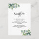 Sage Eucalyptus Woodland bröllopsfirande tilläggskort lägger till en graciös touch till din brölloppssvit samtidigt som det ger viktig information om mottagningen på ett charmigt och samordnat sätt. Designat med mjuka salvia nyanser och elegant eukalyptusgrönska, kompletterar detta kort skogs-, trädgårds- eller rustika bröllopsteman vackert. Det låter par tydligt dela information om efterceremoni firande med gästerna samtidigt som de behåller en sammanhängande och stilfull estetik genom hela deras brevpappersset. Perfekt för par som uppskattar naturliga element och en förfinad men avspänd atmosfär, säkerställer detta tilläggskort att dina gäster känner sig välkomna och informerade.