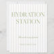 En fräsch och elegant skylt för hydrationsstationen med mjuka beige ränder, i kombination med raffinerad salvia grön serif-typografi och delikat handskriven skrift. Perfekt för utomhusbröllop, trädgårds fester och sommarfirande. En del av den koordinerade “Iris” bröllopssamlingen — utforska matchande delar i hela sortimentet. • Mockuper för denna design skapades med Midjourney AI.