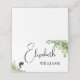 Skapa en sofistikerad ton för din strand- eller trädgårdsmottagning med detta slagkraftiga menykort i salvia grönt med fiskmotiv, specialdesignat för ett romantiskt, botaniskt bröllop. Med delikat eukalyptus-foliografi i akvarell och krispig, modern typografi visar detta kort elegant upp din gourmet-fiskrätt och förfinade parningar. Klicka helt enkelt på " Anpassa" för att lägga till ditt specifika fiskval, bröllopsdatum och namn, så säkerställer du att du gör ett fräscht, exklusivt och organiserat intryck på varje gäst när de sätter sig ner för en minnesvärd middag.