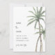 Palmträd Spara Datum-kort. Vit bakgrund. Digitalt. Destination Bröllop. Salvia.