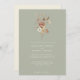 Enkelt. Minimalistiskt. Modernt. Denna BOHO minimalistiska bröllopsinbjudan skapades från handmålad akvarellbild av internationellt licensierad konstnär och designer, Audrey Jeanne Roberts. Dämpade torkade vildblommor samlas i en lös bukett med en delikat fjäril och Gingko blad grönska. Denna version har en salvia grön framsida med elfenbensvit text & elfenbensvit baksida. Copyright.