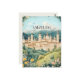 Detta är ett vackert vykort för resenärer till/från Salzburg i Österrike. Det ger en vismisk utformning som representerar Salzburgs magiska slott, stadskärna och omgivande berg.