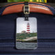 En bild av den röda och vita strimlade fyren på Sambroön utanför Nova Scotias kusten, Kanada.
