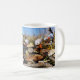 Samenwerking van Fubby poppetjes op een houtwerkpl Kaffemugg
