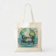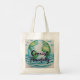 Den här väskan har en vattenfärgsutskrift i blått och grönt med meddelandet "samexistera fredligt".