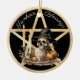 Den här Samhain-konstruktionen har hälsning "Samhain Blessings", och ett guld färgad pentacle, och vacker grafik av svarta och vita ljus, pumpor och höst löv. På utsmyckningens baksida har jag varit med om året (som exempel) i mitten av en färgad-stjärna i guld. Hela texten och typsnitt kan anpassas, liksom färg i bakgrunden. Bilder får justeras eller ersättas.