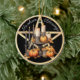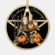 Den här Samhain-konstruktionen har hälsning "Samhain Blessings", och ett guld färgad pentacle, och vacker grafik av svarta och vita ljus, pumpor och höst löv. På utsmyckningens baksida har jag varit med om året (som exempel) i mitten av en färgad-stjärna i guld. Hela texten och typsnitt kan anpassas, liksom färg i bakgrunden. Bilder får justeras eller ersättas.