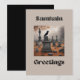 Samhainhälsningar! Glad Halloween! Detta kort har en kyrkogård, höstlöv och en korp. Vad kunde vara mer perfekt för denna högtid för minne och för årets sista skörd. Insidan lämnas tom så att du kan anpassa meddelandet som du ser passande.