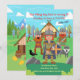 Fira din lilla Viking-pojks födelsedag med denna färgglada inbjudan! Den visar en pojke som är Viking-krigare med hjälm med horn, träsköld och yxa. Han och några av hans skeppskamrater poserar framför ett Vikingahus. I bakgrunden syns ett skandinaviskt landskap och ett Vikingahus med stråtak dekorerat med ett dödskalle och drakhuvuden. Framför står en skylt med texten PARTY, pojkens vargdjur och gula ballonger. Den är perfekt för en Viking-inspirerad födelsedagsfest! Denna pojkfödelsedagsinbjudan kan enkelt anpassas för din fest genom att lägga till dina uppgifter.
