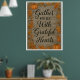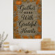 Ta in säsongens värme i ditt hem med den här Thanksgivingen väggkonsten med frasen "Samla hit med tacksamma hjärtan". Utformningen blandar åkerhinnans charm med mysigt höst färger och sätter på ett vättat trä-stil-bakgrund med handdragen höst löv, pumpor och akorner. Perfekt för entryways, matsalar eller köksdekoration gör att Thanksgivingen firande får en hjärtlig beröring. Underbar för utskrivbar väggkonst älskare, säsong dekoration eller som en tänkbar värdgåva.