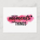 "Collect Moments" inspirerande citattecken vykort. En enkel men effektiv typografisk design, svart text med svart hjärta på röd/rosa färg texturerad bakgrund. Det här kortet kommer att utgöra ett underbart tillägg till ditt hem- eller kontorsdekorat eller är ett idealiskt vykort som ska skickas till en vän eller nära en vän.