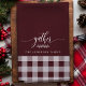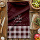 Lägg till en varm och charm till köket med det här köket, med det här köket, som innehåller en massa burgundy och vitt Buffalo Check. Den här kökshandduken är perfekt för att skapa en mysigt och bjuda in kängor för ditt hem under höns- och Thanksgiving. Den har en klassisk buffel i mönster med ord och anpassade namn. Funktionell och snyggt, det är ett underbart tillägg till ditt köksskåp eller en tankfull personlig.