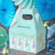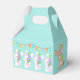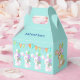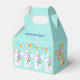 En Roligt Påsk-förmånslåda med bruna och vita kaniner. Den här designen börjar med en pastellbakgrund. På fram- och bakpanelerna finns det en rad vita kaniner med Påskägg för ljusa färgader. Ovanför kaninerna finns det en banderoll som lyder "GLAD PÅSK". På sidpanelerna, en större version av den vita kaninen, i brunt. Text kan anpassas.