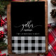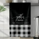 Lägg till en varm och charm till köket med det här köket, där det finns ett svart och vitt Buffalo-kök. Den här kökshandduken är perfekt för att skapa en mysigt och bjuda in kängor för ditt hem under höns- och Thanksgiving. Den har en klassisk buffel i mönster med ord och anpassade namn. Funktionell och snyggt, det är ett underbart tillägg till ditt köksskåp eller en tankfull personlig.