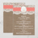 Samlingen av korallsand-dollarns bröllop är en fantastisk design med en underbar rustik-spiralbakgrund med en romantisk vintage vit snöre-effektstam avslutat med ett bedövande sand-dollar och korallribbon. Dessa menyer kan vara personligen för ditt särskilda tillfälle och skulle göra perfekten till menyer i bröllop, möhippor, förlovningsfest-menyer, födelsedagsfest-menyer och mycket, mycket mer. *Observera att Zazzle endast säljer tryckta produkter så att den här artikeln inte har något riktigt material som täcker snöre, sand-dollar eller band.