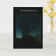 Kortets framsida har en silhuett av träd och byggnad mot nattens himmel med ett halvmåns måne och en enda stjärna. Meddelandet i texten lyder: "Bara en anteckning för att du ska veta att jag tänker på dig.."