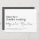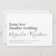 Berätta för dina vänner och din familj om din ändrade plan med denna moderna inbjudan till "samma kärlek mindre bröllop".