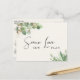 Om omständigheterna kräver att du minskar antalet gäster på din bröllopsfest kan du informera din ursprungliga utökade gästlista med detta vackra och moderna ljust krämfärgade postkort för nedskalad bröllopsinbjudan med mjuka vattenfarger av ljusgrön eucalyptusgrönska med guldbelägg och "Same Love New Plan" skrivet i en blandning av stilig handskrift och modern typografi på framsidan. På baksidan kan du enkelt anpassa meddelandet om nedskalning av bröllopet i mer detalj och lägga till information om livesändning av ceremonin, kommande firanden och bröllopswebbplats.