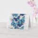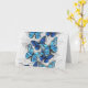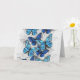 Lodräts sammansättning av realistiska, blå och vita morfobutterflugor på grått-texturerad bakgrund. Morpho blue butterfly.