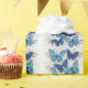 Lodräts sammansättning av realistiska, blå och vita morfobutterflies på gråttets texturerade bakgrund. Morpho Blue Butterfly.