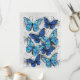 Lodräts sammansättning av realistiska, blå och vita morfobutterflies på gråttets texturerade bakgrund. Morpho Blue Butterfly.