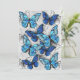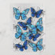 Lodräts sammansättning av realistiska, blå och vita morfobutterflies på gråttets texturerade bakgrund. Morpho Blue Butterfly.