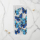 Lodräts sammansättning av realistiska, blå och vita morfobutterflies på gråttets texturerade bakgrund. Morpho Blue Butterfly.
