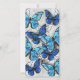 Lodräts sammansättning av realistiska, blå och vita morfobutterflies på gråttets texturerade bakgrund. Morpho Blue Butterfly.