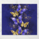 Sammansättning av lyxsafir och smyckesfjärilar från guld på blå texturerad bakgrund.
