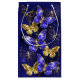 Sammansättning av lyxsafir och smyckesfjärilar från guld på blå texturerad bakgrund.