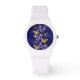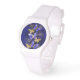 Sammansättning av lyxsafir och smyckesfjärilar från guld på blå texturerad bakgrund.