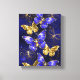 Sammansättning av lyxsafir och smycken i guld på blå texturerad bakgrund.