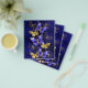 Sammansättning av lyxsafir och smyckesfjärilar från guld på blå texturerad bakgrund.