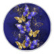 Sammansättning av lyxsafir och smycken i guld på blå texturerad bakgrund.