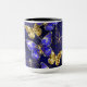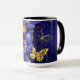 Sammansättning av lyxsafir och smyckesfjärilar från guld på blå texturerad bakgrund.