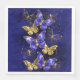 Sammansättning av lyxsafir och smyckesfjärilar från guld på blå texturerad bakgrund.