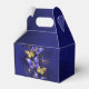Sammansättning av lyxsafir och smyckesfjärilar från guld på blå texturerad bakgrund.