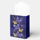 Sammansättning av lyxsafir och smyckesfjärilar från guld på blå texturerad bakgrund.