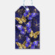 Sammansättning av lyxsafir och smyckesfjärilar från guld på blå texturerad bakgrund.