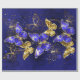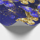 Sammansättning av lyxsafir och smyckesfjärilar från guld på blå texturerad bakgrund.