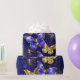 Sammansättning av lyxsafir och smyckesfjärilar från guld på blå texturerad bakgrund.