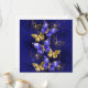 Sammansättning av lyxsafir och smyckesfjärilar från guld på blå texturerad bakgrund.