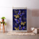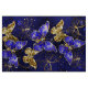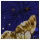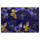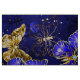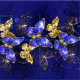 Sammansättning av lyxsafir och smyckesfjärilar från guld på blå texturerad bakgrund.