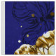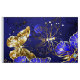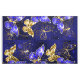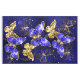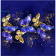 Sammansättning av lyxsafir och smyckesfjärilar från guld på blå texturerad bakgrund.