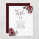 Budgetera blommigtens burgundy-bröllop-bordsnummer och sätesdiagram med gästlista