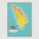 Samos Grekiska ön karta med en vacker gammal vintage stil röd bi flygplan.