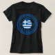 Samos, Greklands kvinnosvarta T-shirt med Greklands nationella Flagga i en symbol för den antika grekiska mönster-cirkeln. Njut av att bära den här T-tröjan medan du är på semester på den vackra Samos-ön eller ge den som en gåssouvenir.
